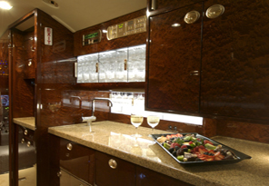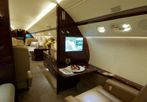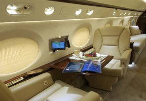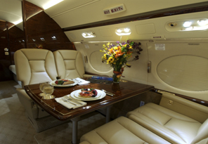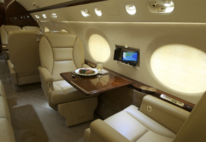 The cabin of the Gulfstream 550 is 50.1 feet long, 6.2 feet high, and 7.3 feet wide, for a total cabin volume of 1,669 cubic feet. Its extra‑wide oval windows are unique to Gulfstreams and provide plenty of light and a great view. The cabin usually seats between fourteen and nineteen people. According to Gulfstream at the time of the Gulfstream 550’s release, no other private jet with full fuel tanks could fly more passengers a further distance in less time than the G550 could.